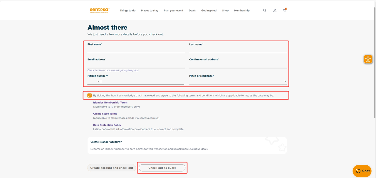 Step 3.3: Fill in the required information, agree to the terms and conditions, and select "Check out as guest."