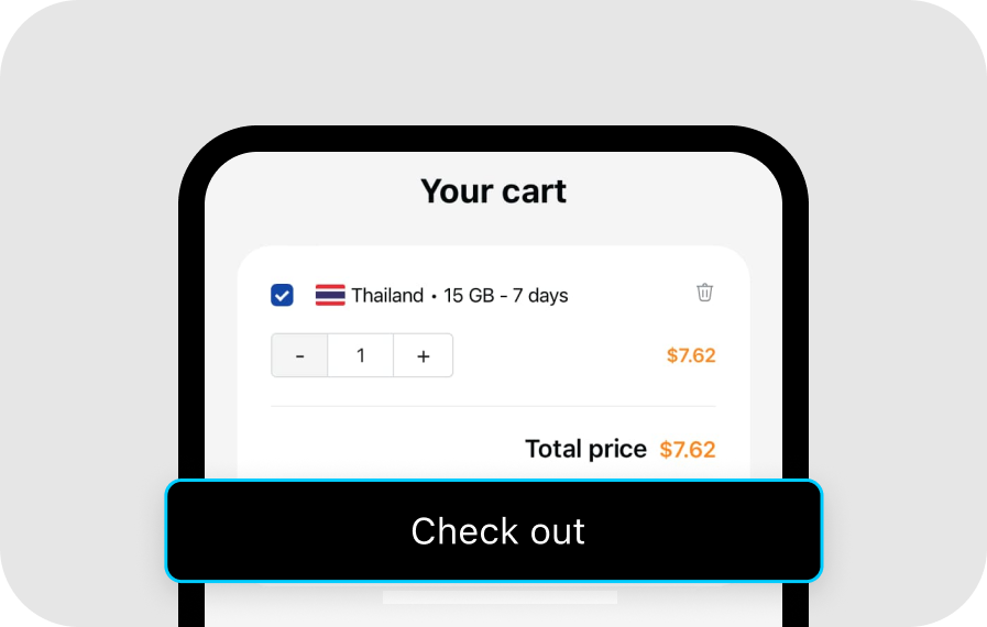 After choosing your preferred eSIM, proceed by clicking 'Buy Now' on the product page or 'Check out' from your cart to access the Check out page