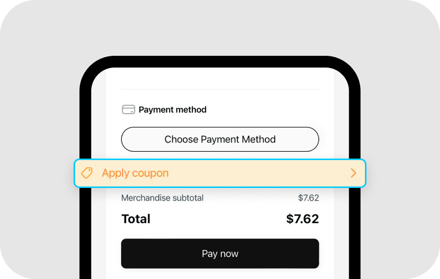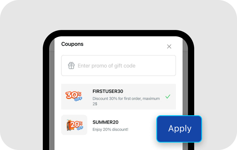 On the Coupons page, enter your gift code or choose from the available discount codes listed, click 'Apply'
