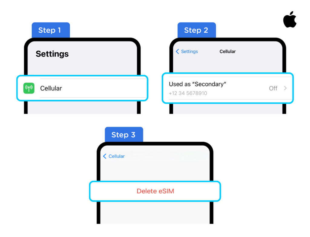 eSIM limitations: Be aware that eSIMs can have limitations, and some actions, like deleting them, can be irreversible.