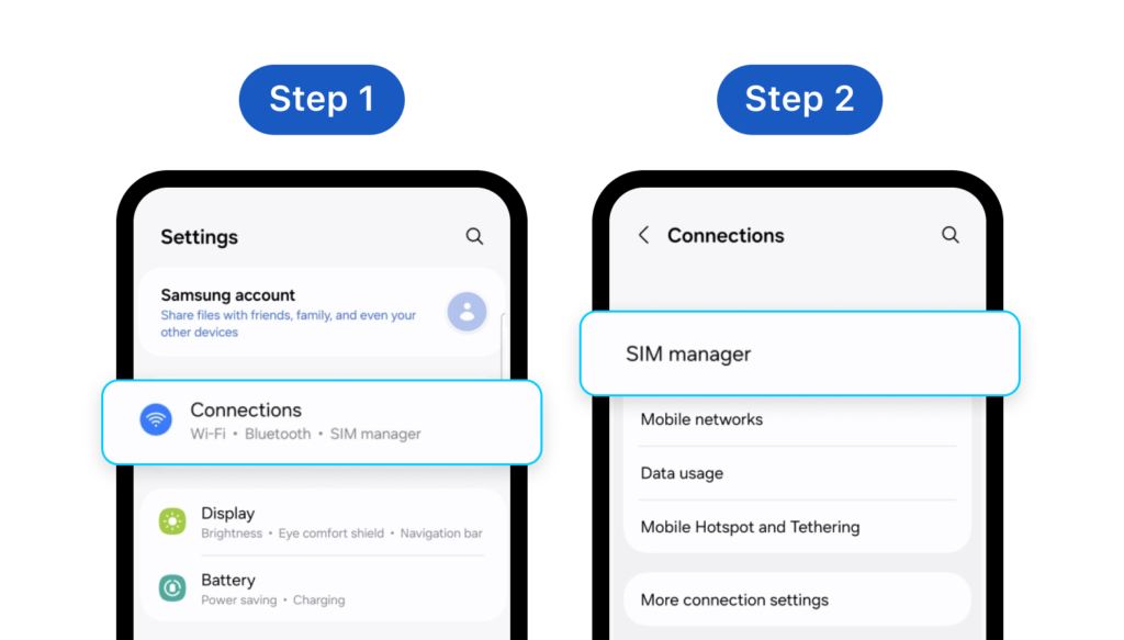 Step 1: Go to Settings > Connections **Step 2: **Choose SIM manager