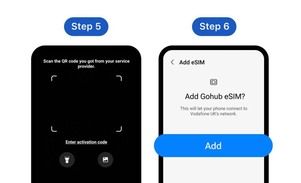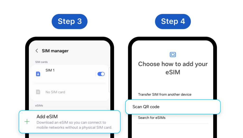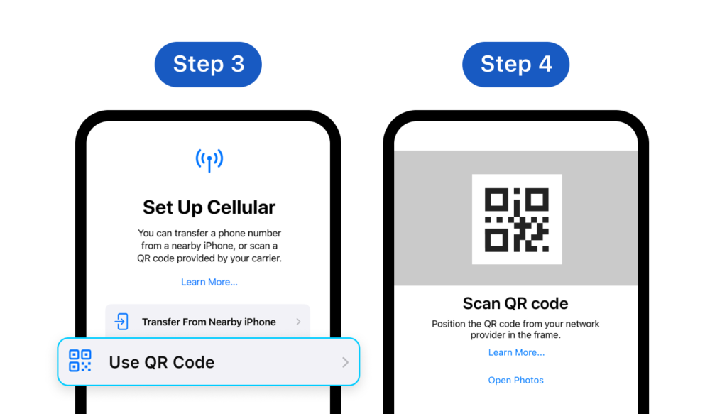Step 3: Choose Add eSIM **Step 4: **Choose Scan QR code