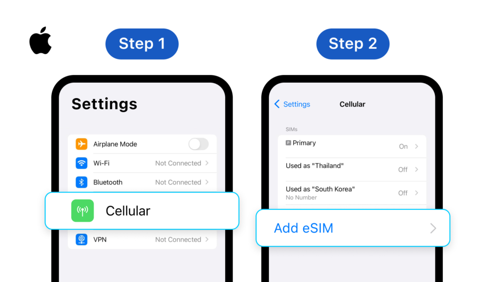 **Step 1: **Go to Settings > Cellular (or Mobile Data) **Step 2: **Choose Add eSIM or Add Cellular Plan